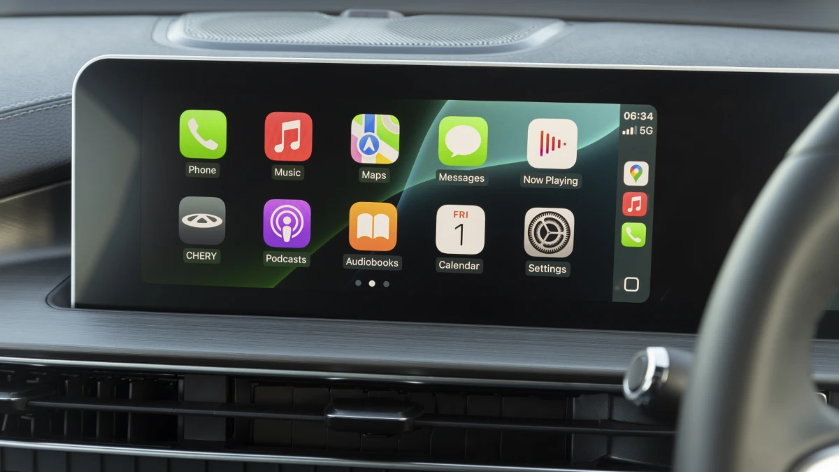 Infotainment system: large touchscreen with connectivity options for navigation, media, and smartphone integration.